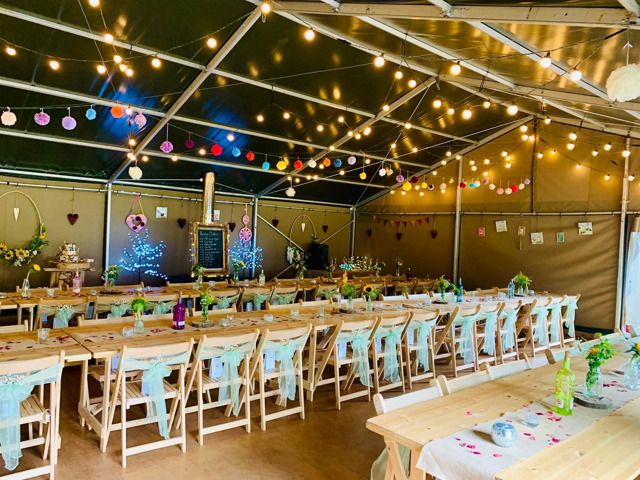 wedding set up inside safari tent