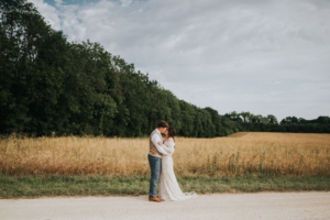 wedding couple in field